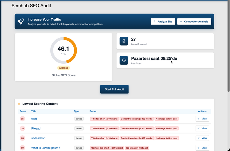 Bu eklenti xenforo forumunuzda ki sayfaları tarar, eksikleri sizlere belirterek puanlar.